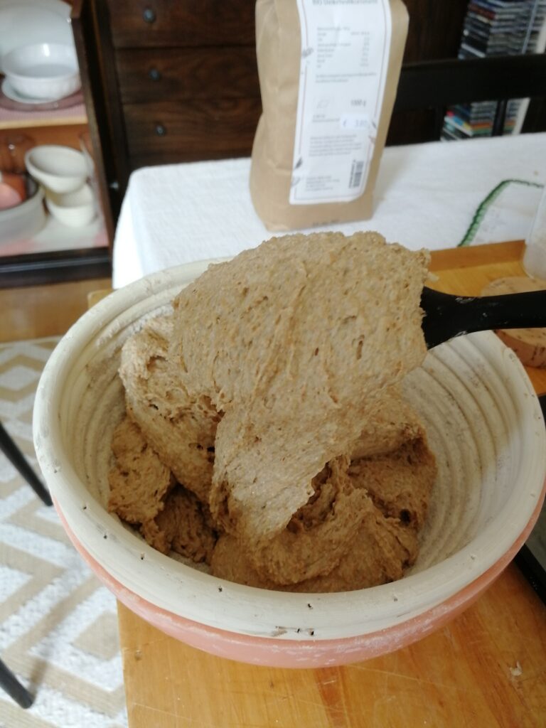 Bei unseren Sauerteig geführten Broten verwenden wir ausschließlich unseren eigenen gezüchteten Roggen-Sauerteig, der uns – liebevoll gepflegt – seit März 2022 als natürliches Backtriebmittel dient. Dabei achten wir auf eine möglichst lange Gehzeit, um dem Brot eine möglichst reichhaltige und schonende Gärung zu ermöglichen. Von der „Aktivierung“ des Sauerteiges bis zum fertigen Brot vergehen bei uns somit mindestens 3 Tage. Dadurch wird das Brot einerseits bekömmlicher – andererseits auch haltbarer.