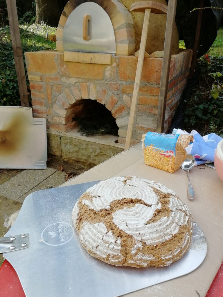 Ab einer bestimmten Mindestbestellanzahl und je nach Wetter und Witterung backen wir die Brotlaibe in unserem eigenen Lehmbrotbackofen. Dieser wird ganz traditionell mit Feuer beheizt. Das Brot erhält somit in Geschmack und Konsistenz eine ganz typische, urtümliche Note und weckt sicher in dem Ein oder Anderen wunderbare Erinnerungen an die Kindheit.