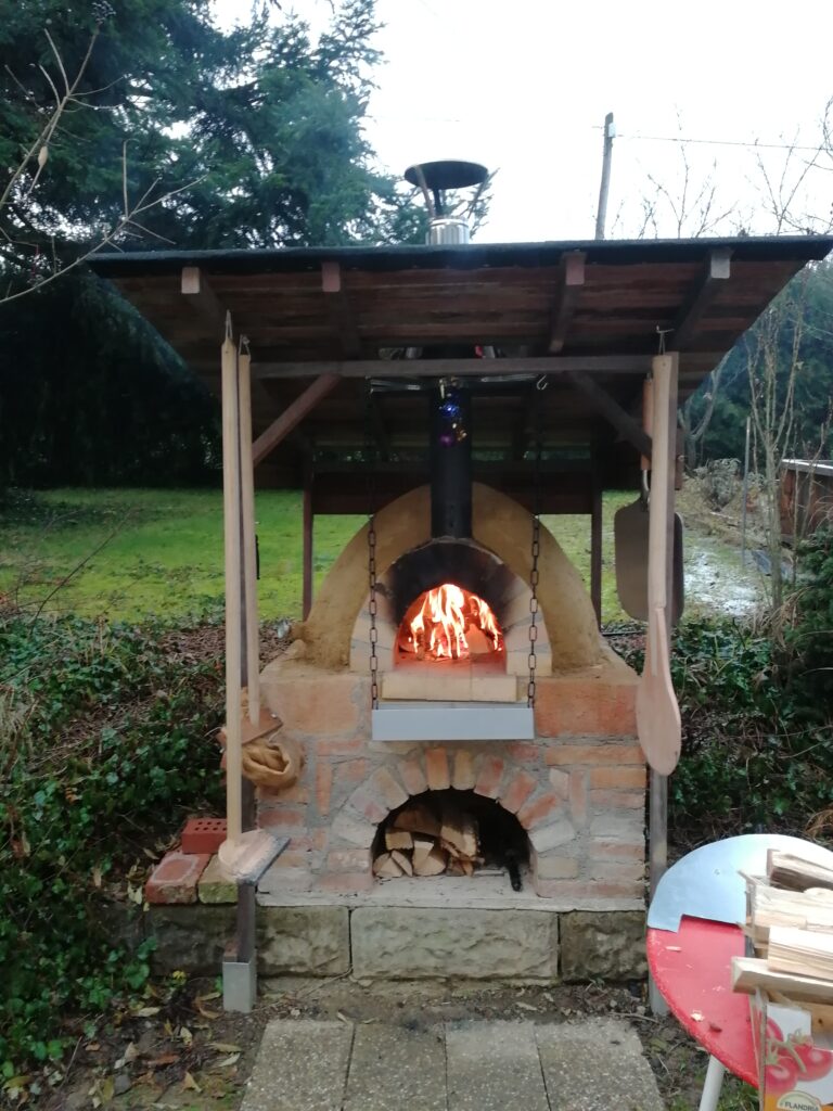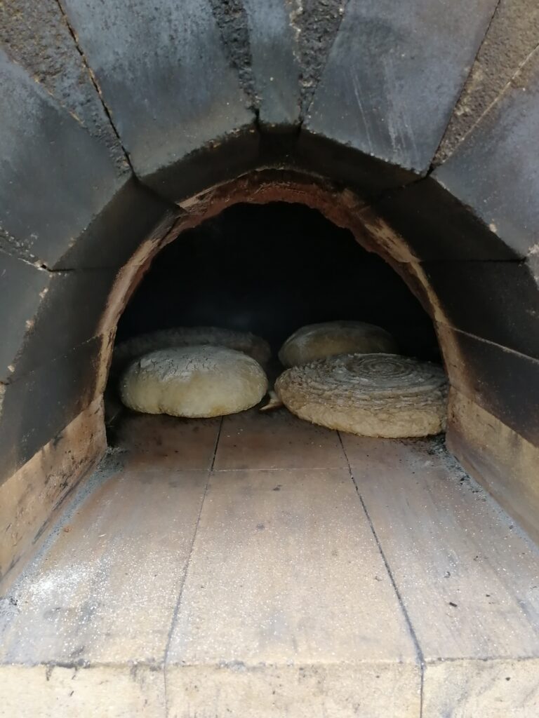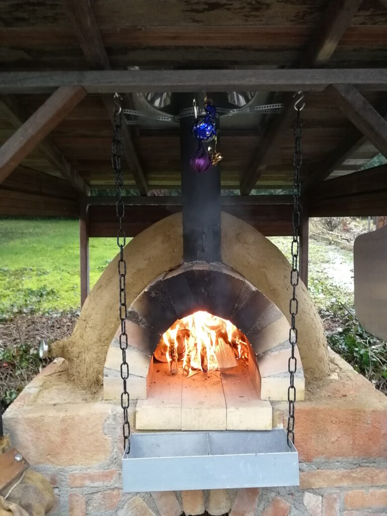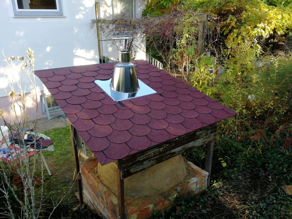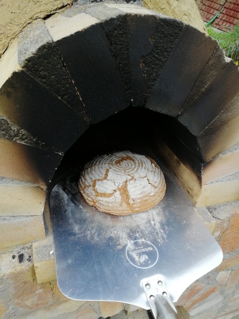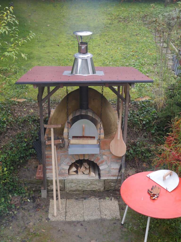 | Materialien: | Lehm/Sand (Speicher- und Isolierschicht) Schamotte (Backfläche + Ofenmund) |